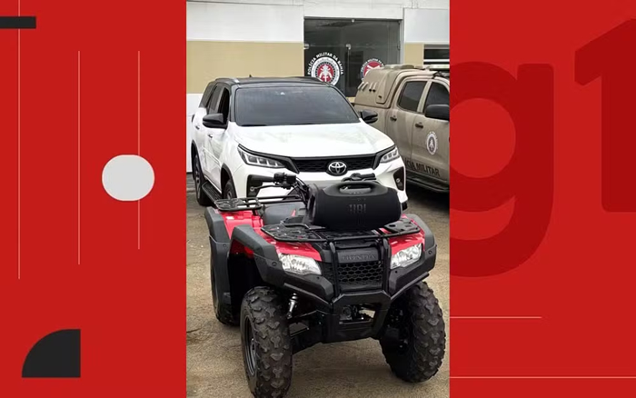9mm, munições, um veículo, um quadriciclo e