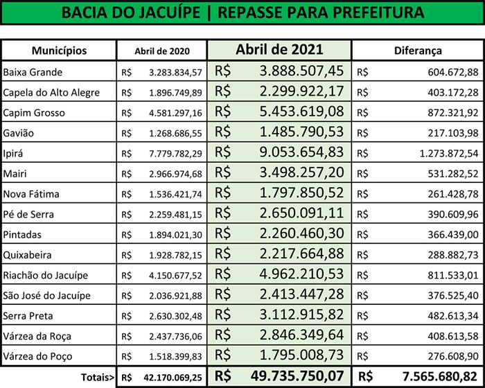 De 1º a 30 de abril receberam R$ 49.735.750,07,
