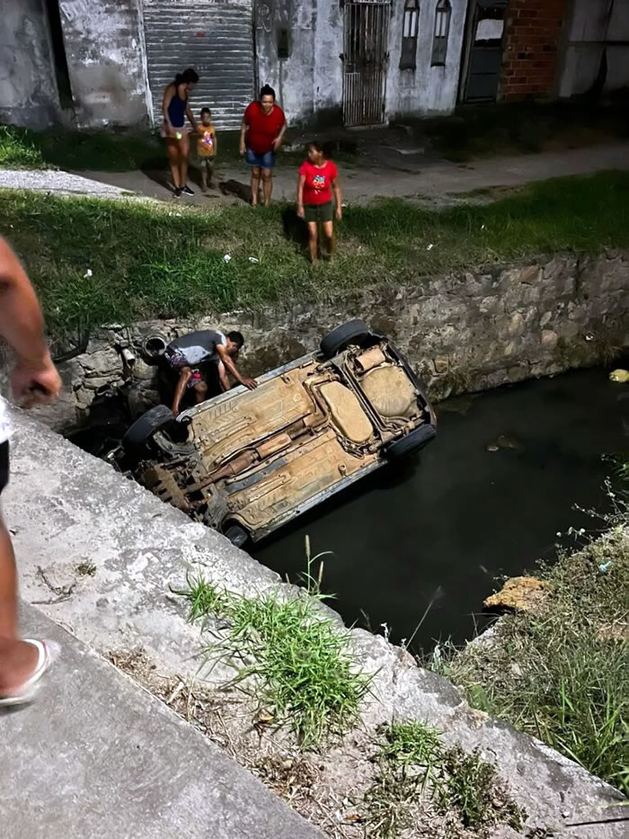 carro caiu dentro de um canal do córrego de