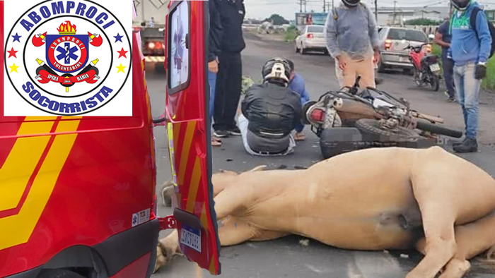 onde uma motocicleta colidiu com um cavalo na