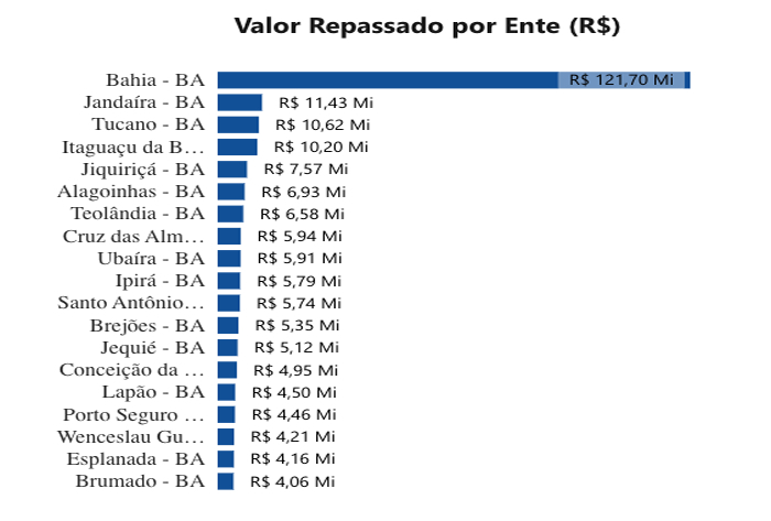 Tucano, com R$ 10,62 milhões, e Itaguaçu da
