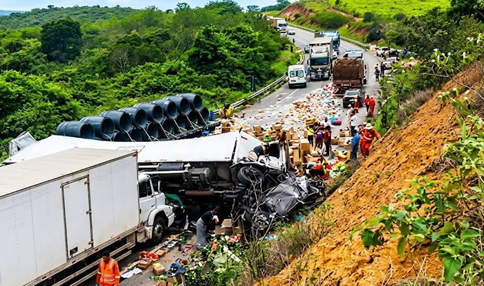 um acidente envolvendo uma carreta na BR-116,
