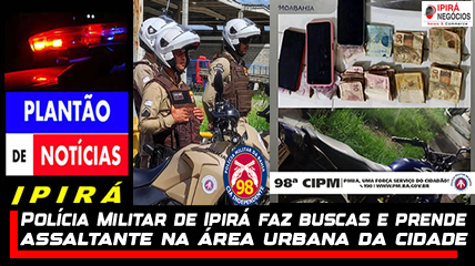 Acompanhe as últimas notícias de Ipirá, região, Brasil e do mundo nas áreas de política, economia, cotidiano, saúde, ciência, ambiente, educação e outras áreas, em textos ou áudio. A prioridade será sobre notícias relacionadas a sede de Ipirá, em especial notícias do universo cotidiano do ipiraense.